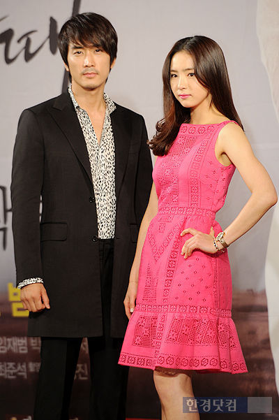 배우 송승헌, 신세경이 27일 오후 서울 여의도동 63시티에서 열린 MBC 새 수목 미니시리즈 '남자가 사랑할 때'(극본 김인영, 연출 김상호, 최병길) 제작발표회에 참석해 포토타임을 갖고 있다.