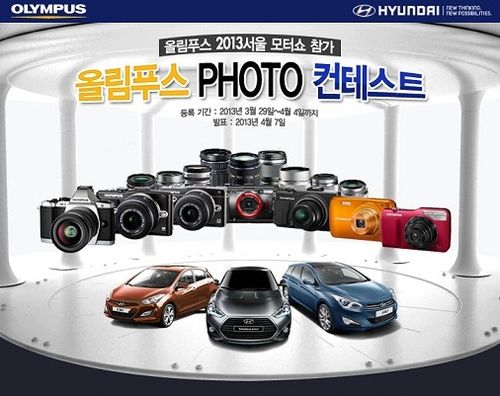 올림푸스한국은 내달 7일까지 일산 킨텍스에서 진행되는 서울 모터쇼 기간에 현대자동차 전시관에 별도의 체험존을 꾸린다고 29일 밝혔다. 이 회사가 모터쇼에 참가하는 것은 처음이고, 카메라 업계에서도 이례적인 일로 여겨진다.