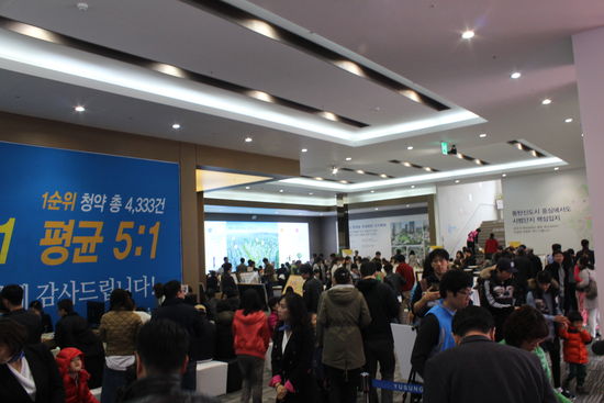 1일 금융결제원에 따르면 올 1분기 청약접수를 받은 총 39개 단지 가운데 평균 청약경쟁률 1대 1을 넘어선 아파트는 21개 단지다. 이 중 청약 성적이 가장 좋았던 아파트는 '동탄역 더샵 센트럴시티'로 총 810가구 모집에 4845명이 지원, 5.98대 1의 청약경쟁률을 기록했다.