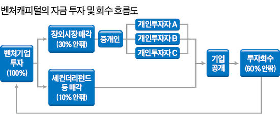 증권거래세법 시행령 개정으로 가장 타격을 많이 받는 곳은 벤처캐피털 업계다. 상당수 벤처캐피털은 창업 초기 기업에 자금을 투자한 뒤 30% 안팎을 장외시장에서, 나머지를 기업공개(IPO) 이후 장내시장에서 회수해왔다. 장외시장이 마비되면서 투자금의 30%를 회수하는 방법이 막막해졌다.