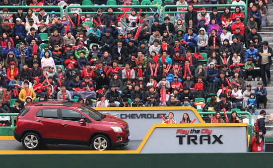 한국GM은 올 한해 동안 프로야구 경기장 내 쉐보레 트랙스 차량을 전시하고 관중에게 편의를 제공하는 프리미엄 시트를 선보인다.