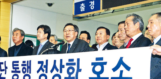 이틀째 개성공단으로 가는 길이 막히면서 현지 진출 국내 업체들의 시름도 커지고 있다. 김기문 중소기업중앙회 회장은 4일 오전 파주시 남북출입사무소(CIQ)에서 개성공단기업협회와 공동으로 발표한 성명에서 “개성공단 현지 공장 한두 곳이 가스 공급 중단으로 가동을 멈췄다”고 말했다.