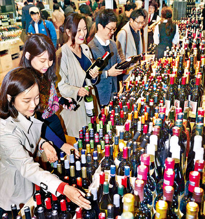 서울 소공동 롯데백화점 본점 지하 1층에 마련된 와인 기획전 ‘비노 인 롯데(VINO IN LOTTE)’ 행사장. 1000여종의 와인이 꽉 들어찬 매대마다 손님들로 붐볐다.
