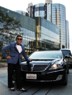 16일 자동차업계에 따르면 현대차는 지난해 8월부터 에쿠스 리무진을 협찬하며 싸이의 해외 활동을 적극 지원해 왔다. 미국을 시작으로 프랑스 독일 중국 등 싸이가 가는 곳마다 현지 법인을 통해 차량을 제공했다.