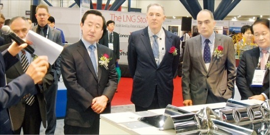 세계 LNG 선박 가운데 80% 정도를 제조하고 있는 삼성중공업, 현대중공업, 대우조선해양 등 국내 조선 3사의 부스는 에너지 업체와 선주사가 몰려들면서 개막 첫날부터 문전성시를 이뤘다. 삼성중공업과 현대중공업은 단열재 두께를 두껍게 하는 ‘마크 3’, 대우조선해양은 폴리우레탄 폼과 미네랄 울을 합성한 ‘NO 96’ 방식의 기술을 알리는 데 주력했다.