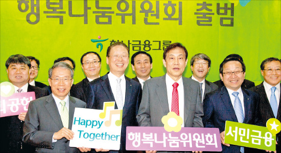 하나금융은 앞으로 최근 출범시킨 ‘행복나눔위원회’를 통해 사회책임경영을 주도할 계획이다. 위원회는 김정태 그룹 회장이 위원장을 맡았으며 각 계열사 최고경영자(CEO)가 서민금융, 중소기업·청년창업, 소비자보호, 사회공헌 등 부문별로 담당한다.