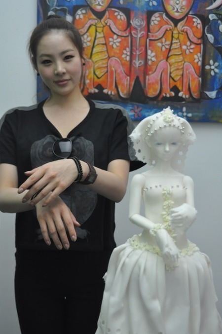 사진 속 신수지는 종합예술 슈거공예가 김향식 디자이너가 제작한 케이크 인형과 100%의 싱크로율을 선보여 눈길을 끌고 있다.