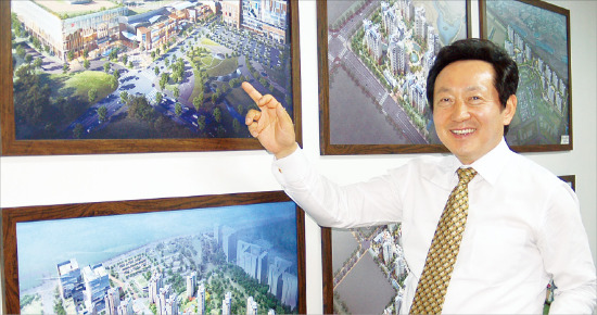 김 사장은 1991~2000년 세 차례나 하남시의원을 지낸 정치인 출신이다. 대학에서는 상담학과 사회복지학을 전공했고, 한양대지방자치대학원에선 지역개발학 도시개발 분야에서 석사학위를 취득했다. 석사논문은 하남시를 모델로 한 ‘생태도시의 추진전략’. 그야말로 복지와 개발, 정치의 접점인 셈이다. 그는 2010년 11월부터 하남도시개발공사를 이끌고 있다.하나도시개발의 최대 현안은 지역현안사업부지 1~2지구와 위례신도시 주택사업이다. 지역현안사업부지 1지구는 하남 풍산동 401 일원 레미콘, 아스콘공장 이전 부지에 도시지원시설과 주택지를 조성하는 프로젝트로 오는 7월 착공한다. 지역현안사업부지 2지구인 신장동 228 일대에는 복합쇼핑몰 등 복합단지가 개발되고 한강 수변공간과 덕풍천을 활용한 주거공간이 들어선다. 이미 지난해 9월 부지조성공사가 시작됐다.