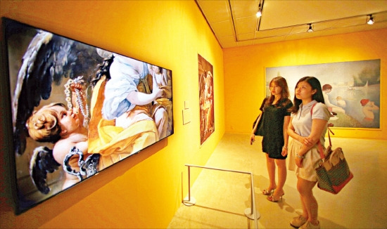 삼성전자가 오는 9월22일까지 서울 서초동 예술의전당 한가람미술관에서 열리는 ‘시크릿 뮤지엄’ 전시회를 후원한다. 관람객들이 18일 삼성 스마트TV를 통해 명화를 감상하고 있다.