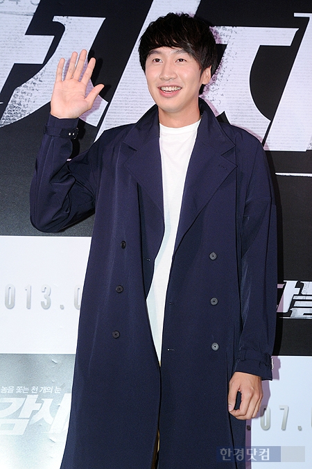 배우 이광수가 25일 오후 서울 삼성동 메가박스 코엑스에서 열린 영화 '감시자들'(감독 조의석, 김병서, 제작 ㈜영화사집) VIP시사회에 참석해 포토타임을 갖고 있다.