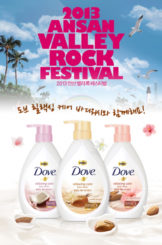 유니레버코리아 도브㈜가 오는 26일부터 28일까지 열리는 ‘안산 밸리락 페스티벌 2013’에서 릴렉싱 케어 샘플링 부스를 운영한다.