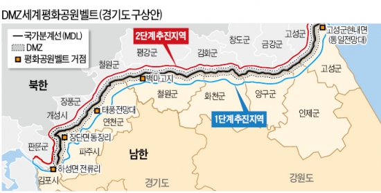 ‘DMZ 세계평화공원 조성’은 남북이 군사적 대치를 하고 있는 만큼 넘어야 할 산이 많다. 박 대통령의 ‘DMZ 세계평화공원 조성’ 구상은 대선 공약이며 지난 5월 미국 방문 때 의회 상·하원 합동회의 연설에서도 공개적으로 언급했다.
