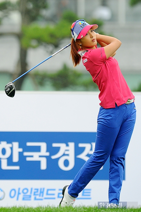 11일 경기도 안산 대부도 아일랜드CC에서 열린 '제35회 메트라이프·한국경제 KLPGA 챔피언십'(총상금 7억원, 우승상금 1억 4천만원) 1라운드 경기에 참가한 양제윤이 10번 홀에서 티샷을 하고 있다.