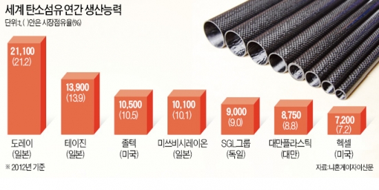 두 번째는 생산설비 확대를 통한 가격경쟁력 확보다. 그동안 탄소섬유는 높은 가격 때문에 활용가치에 비해 보급이 더디다는 지적을 받아왔다. 니혼게이자이는 “도레이가 졸텍을 인수해 규모의 경제 효과를 거둘 경우 탄소섬유 가격도 빠르게 하락할 가능성이 높다”고 내다봤다.