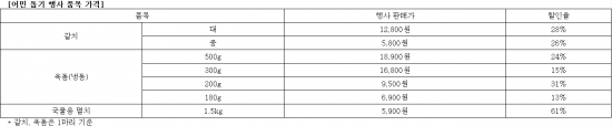 이번 행사에서는 제주 서귀포 수협을 통해 들어오는 갈치와 옥돔, 수협중앙회를 통해 들어오는 남해 멸치를 15%에서 최대 60%까지 할인된 가격으로 판매한다.