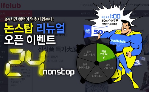 하프클럽은 사이트 리뉴얼을 기념해 10월 6일까지 24시간 끊이지 않는 버라이어티 고객만족 이벤트를 펼친다.