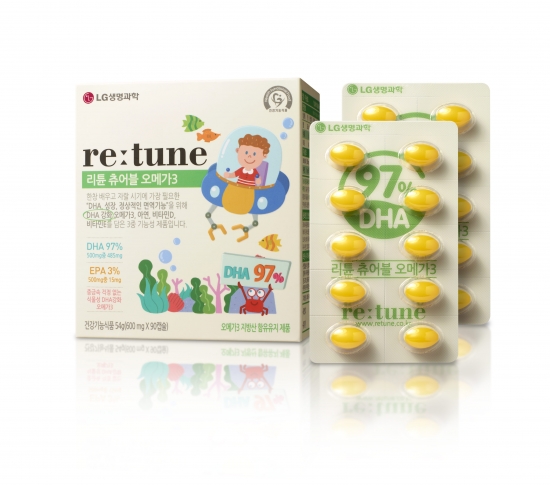 LG생명과학(대표 정일재)의 프리미엄 건강기능식품 브랜드 리튠(re:tune)은 100% 식물성 오메가3를 사용해 DHA를 고함량 함유한 어린이 건강기능식품 ‘리튠 츄어블 오메가3’를 출시했다.
