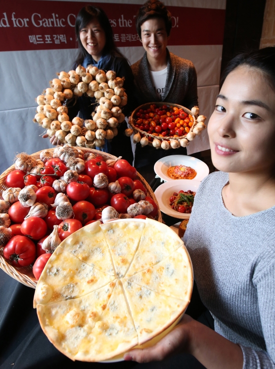 글로벌 외식기업 썬앳푸드의 '매드 포 갈릭'과 '세레브 데 토마토'가 31일 서울 종로구 매드 포 갈릭 광화문점에서 콜래보레이션 프로모션을 진행해 마늘과 토마토를 이용한 3가지 세트 메뉴를 선보이고 있다. 이번 콜래보레이션 메뉴는 ‘세레브 데 토마토'의 인기 파스타 메뉴 3종과 고급 토마토 디저트 메뉴, 그리고 ‘매드 포 갈릭’의 단골 애피타이져 2종과 라이스 2종, 피자 1종으로 구성되어 ‘매드 포 갈릭’과 ‘세레브 데 토마토’의 인기 메뉴를 모두 맛 볼 수 있다. 이벤트 메뉴를 주문하면 세트메뉴당 300원의 금액이 적립되어 아프리카와 아시아 개발 도상국 어린이들의 학교 급식에 기부된다.