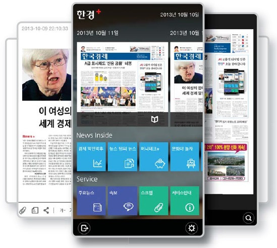 한경+는 한국경제신문 기사를 신문 형태 그대로 읽을 수 있는 ‘지면보기’ 서비스와 취재 뒷얘기를 담은 ‘뉴스인사이드’, 최신 뉴스를 전하는 ‘주요뉴스’와 ‘속보’로 구성돼 있습니다. 웹사이트(plus.hankyung.com)와 스마트폰 앱(애플리케이션ㆍ응용프로그램), 태블릿 앱에 메뉴가 비슷한 형태로 배치돼 있어 편하게 읽을 수 있죠.한경+ 지면보기 서비스는 시간 차이, 거리 차이를 없앴다는 점에서 혁신적입니다. 신문사에서 한경+ 발행 버튼을 누르자마자 세계 어디서든 바로 신문을 읽을 수 있습니다. 새벽 2시쯤 윤전기가 돌기 시작하면 한경+ 발행 버튼을 누르기 때문에 독자들은 종이신문이 트럭에 실리기도 전에 한국경제신문 기사를 읽을 수 있습니다.