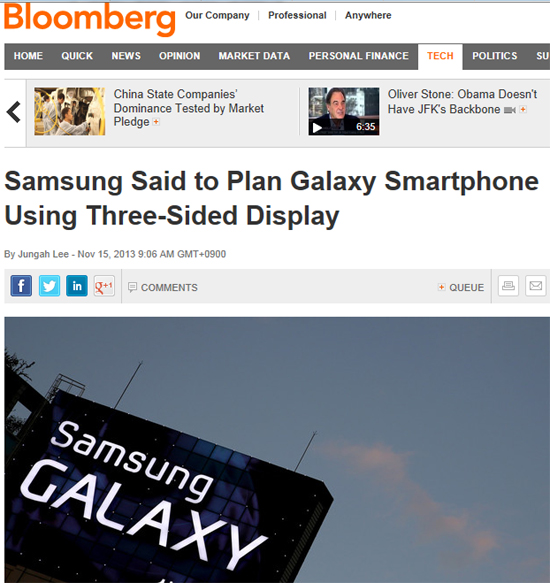 블룸버그는 "차기 갤럭시S 및 갤럭시노트 등 고가 전략 제품이나 아예 신개념 제품에 이 3면 디스플레이가 사용될 것"이라면서 "삼성이 관련 내용을 외부에 밝히지 않았지만 공개 시점은 내년 하반기가 될 것으로 본다"고 덧붙였다.