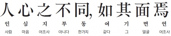 ▶‘사람 마음이 같지 않음은 그 얼굴이 서로 다른 것과 같습니다. 제가 어찌 감히 당신의 얼굴을 저의 얼굴같이 하라 말할 수 있겠습니까?’라는 구절의 일부로, 『춘추좌전』‘양공 31년’에 실려 있어요.