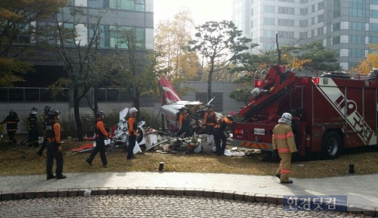 'HL929' 기종인 사고 헬기는 이날 오전 8시 55분쯤 해당 아파트 25층에 부딪히면서 21~27층까지 외벽에 손상을 입힌 뒤 약 100미터 아래 지상 바닥으로 추락했다. 헬기 꼬리날개 부분을 제외한 나머지 동체가 산산조각날만큼 충격이 컸다.