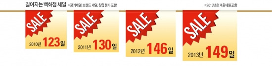김기영 SK증권 애널리스트는 “세일이 길어지면 백화점 수익성은 나빠질 수밖에 없다”며 “아울렛 온라인몰 등으로 빠져나가는 소비자를 잡기 위해 세일을 늘려야 하는 악순환에 빠져 있다”고 말했다.