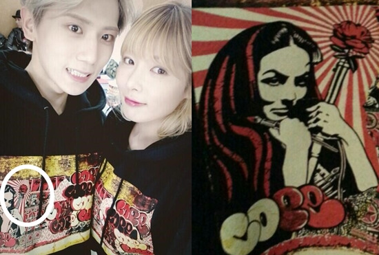 여기서 두 사람이 입고있는 후드티 속에 일본의 '욱일기'를 연상케하는 문양이 포착됐다. '욱일기' 또는 '전범기'라고 불리는 이 깃발은 과거 타 국가 침략을 일삼았던 일본의 제국주의를 연상하는 문양이기 때문에 금기시되고 있다.