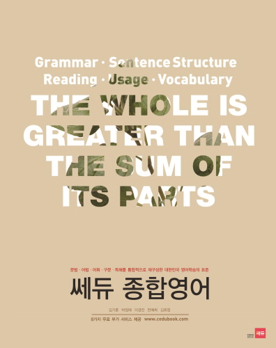 책은 전통적인 영어 문법의 분류를 따르면서도 정확성을 위한 어법 판단, 유창한 독해를 위해 필요한 문법, 구문을 체계적으로 습득하고 필수 어휘와 함께 곧바로 독해에 적용할 수 있도록 집필됐다는 것이 쎄듀 측의 설명이다. 아리스토텔레스의 ‘전체는 부분의 총합보다 크다(The Whole is Greater than the Sum of Its Parts)’를 슬로건으로 문법, 어법, 구문, 독해, 어휘 각 영역을 유기적으로 구성한 것.