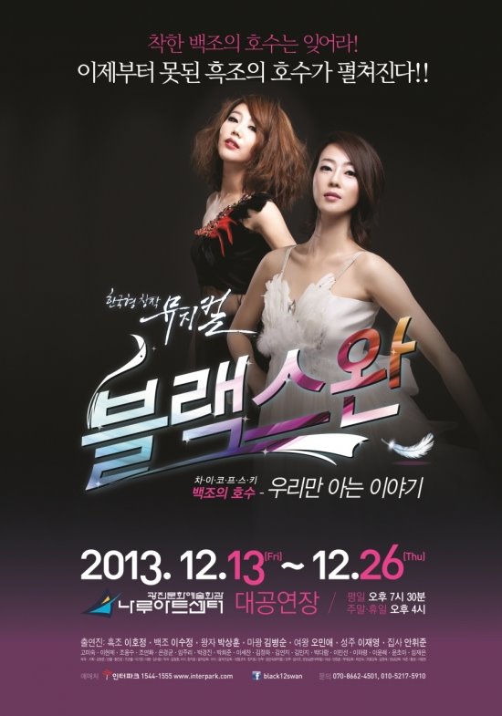 차이코프스키의 '백조의 호수'가 한복을 입는다. 한국적 감성으로 재탄생한 창작 뮤지컬 '블랙스완'이 오는 13일 서울 자양동 광진문화예술회관(나루아트센터)에서 막을 올린다.