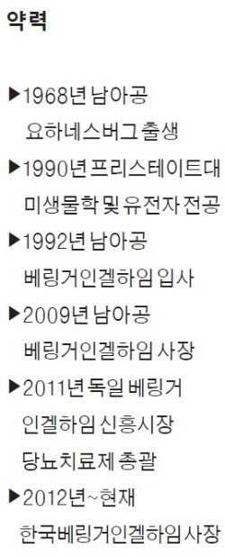 니커크 사장은 네덜란드 이민 3세인 남아프리카공화국 사람이다. 남아공 프리스테이트대에서 미생물학과 유전자 분야를 전공한 뒤 독일계 제약사 베링거인겔하임에 입사했다. 17년 만에 남아공 법인 사장에 올랐다.