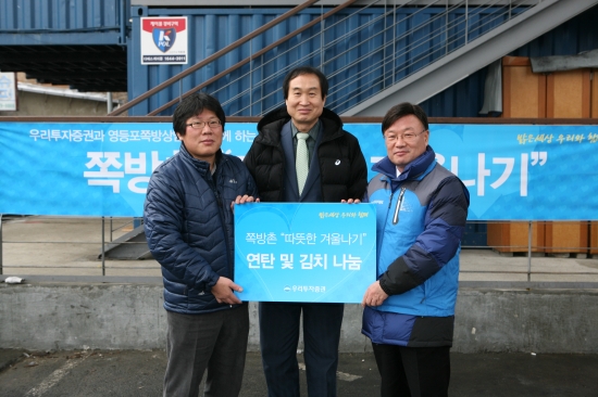 우리투자증권 사회공헌담당자는 "추운 겨울에 어르신들이 따뜻하게 지내실 수 있도록 이번 행사를 기획했다"며 "우리의 작은 정성으로 어르신들의 마음이 조금 더 따뜻해졌으면 좋겠다"고 말했다.