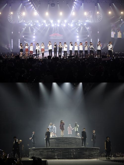 그룹 에프엑스 엑소 합동 콘서트에 팬들이 들썩였다.