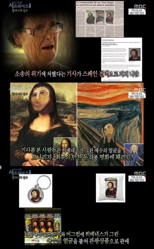 29일 방송된 MBC '신비한TV 서프라이즈'에서는 스페인 북부의 작은 시골마을 보르하에서 벌어진 일이 공개됐다. 성당에서 청소를 하던 할머니 히메네스는 성당을 청소하다 얼굴이 벗겨진 예수의 그림을 보고 마음이 아팠다.
