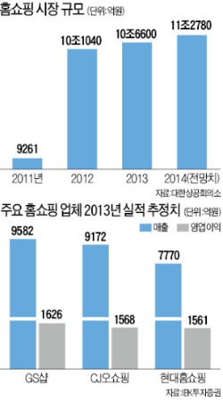 올해 홈쇼핑 시장규모(취급액 기준)는 지난해보다 6180억원 증가한 11조2780억원으로 예측(대한상공회의소)됐다. 2012년 취급액 10조원을 돌파한 뒤 2년 만에 11조원을 돌파할 것이라는 전망이다.