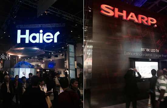 도시바는 5K급 엑스트라 와이드 UHD TV를 선보였다. 이에 질세라 샤프는 8K급 85인치 LED 3D TV를 부스 입구에 내걸었다. 8K TV는 풀HD TV보다 여덟 배, UHD TV보다도 두 배 더 선명한 제품이다. 3D용 안경을 쓰지 않고도 선명한 입체감을 선사했다.