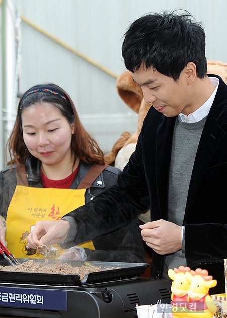 [변성현 기자] 한우자조금관리위원회 한우 홍보대사인 가수 이승기가 27일 오전 서울 서린동 청계광장에서 열린 한우직거래장터를 찾아 한우 불고기를 맛보고 있다.