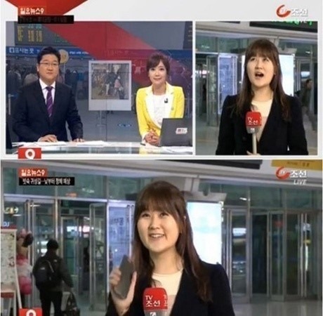 지난 2일 방송된 TV조선 '일요뉴스9'에서 스튜디오와 귀경길 현장 기자 연결 과정에서 우스꽝스러운 장면이 연출 됐다.