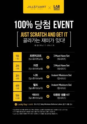 랩 시리즈는 15만원 이상 구매 고객에게 질스튜어트뉴욕의 목걸이 카드 지갑을 증정한다. 특히 질스튜어트뉴욕의 100% 당첨 응모권은 추첨을 통해 질스튜어트뉴욕 ‘트렌치코트’ 와 랩 시리즈 ‘3 머스트 해브’ 세트 등 다양한 선물을 증정한다.
