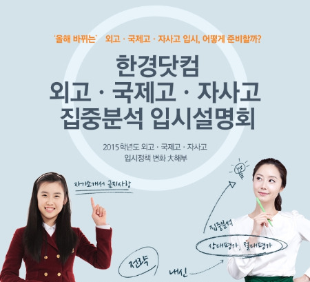 이날 입시설명회는 올해 새로 바뀌는 고입전형을 어떻게 준비할지 고민하는 학부모와 수험생을 위해 열린다. 오전 10시부터 3시간 동안 강사진 주제발표와 참석자 Q&A로 진행되며 참석자에게는 강연 내용을 요약한 자료집이 무료 제공된다. 세부 문의는 한경닷컴 마케팅본부(02-3277-9960)로 하면 된다.
