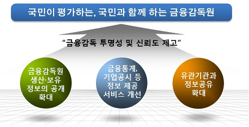금감원 관계자는 "정보 공개 및 공유를 대폭 확대해 '투명한 금융감독'을 추진하고 외부와의 협업 및 소통을 강화할 것"이라며 "외부전문가로 구성된 금융감독자문위원회 등에서 주요업무 실적 및 계획을 평가 받아 적극 개선에 나설 계획"이라고 말했다.