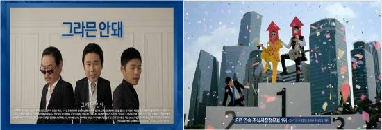 가수 노라조의 '슈퍼맨'을 개사해 지난해 10월부터 올 1월까지 케이블 광고를 방영했다. 반응은 좋았다. SNS에 브랜드 노출 빈도와 인지도가 높아졌다는 게 이 증권사 관계자의 설명이다.