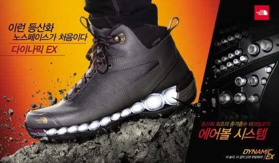 다이나믹 EX는 국내 아웃도어 업계 최초로 부위별 충격흡수 테크놀로지인 에어볼 시스템(Air Ball System)을 적용했다. 다양한 크기의 76개 독립형 에어볼과 쿠셔닝 효과가 좋은 2중 구조의 파일론 미드솔(Phylon Midsole)을 적용해 산행 시 인체에 전해지는 충격과 피로도를 크게 낮췄다는 설명이다. 발의 아치형태와 발가락의 곡선라인을 고려한 인체공학적 디자인으로 편안하고 안정적인 착화감을 제공한다고 회사 측은 강조했다.