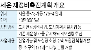 서울시가 그동안 논란이 많았던 세운상가 일대 재개발 방침을 확정했다. 세운상가 건물은 헐지 않고, 리모델링 방식으로 회생시키고, 주변 지역은 171개 중·소 구역으로 쪼개 ‘분할 개발’하는 방식으로 진행키로 했다.서울시는 이 같은 내용의 세운재정비촉진지구에 대한 재정비촉진계획 변경안을 지난달 25일 열린 도시재정비위원회를 통해 심의했다고 3일 발표했다.