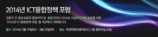 미래창조과학부는 오는 19일부터 20일까지 대전컨벤션센터에서 '2014년 ICT 융합정책 포럼'을 개최한다고 10일 밝혔다.