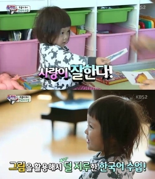 23일 방송된 KBS 2TV '해피선데이 - 슈퍼맨이 돌아왔다'에서는 추사랑이 한국어 수업을 받는 모습이 그려졌다.