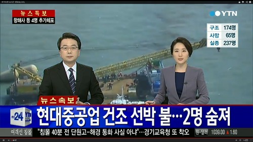한편 현대중공업의 주가는 이날 화재의 여파로 전일대비 1,000원 내린(0.48%) 209,500원으로 마감했다.