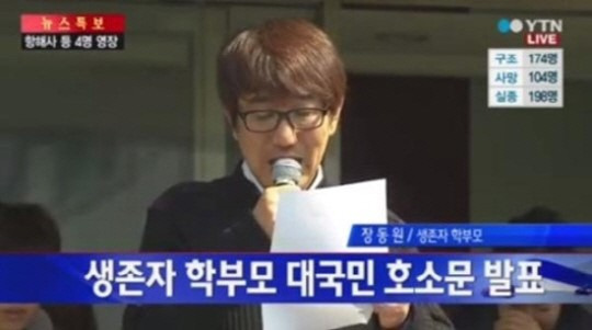 세월호 침몰사고 생존자 학부모 20여명은 22일 오전 경기도 안산시 단원구 고잔동 안산교육지원청 앞에서 대국민 호소문을 발표하고 정부의 신속한 구조를 촉구했다.