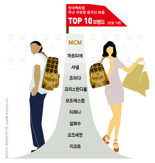 'MCM' '설화수' 등 국내 고급 브랜드들도 꾸준히 인기를 끌고 있다. 지난해 국경절 롯데백화점 본점에선 성주그룹이 운영하는 독일 잡화 브랜드 MCM이 1위를 차지했다. 아모레퍼시픽의 화장품 설화수도 매출 순위가 티파니 다음인 8위를 차지했다.