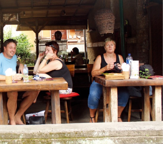 논 주변에는 수많은 노천식 카페가 늘어서 있고, 관광객들은 인도네시아 전통요리인 ‘나시고렝’(볶음밥)을 먹거나 빈탄 맥주를 마시며 푸른 논으로 눈길을 돌린다. 트갈랄랑을 뒤로 하고 원숭이 사원(몽키 포레스트)에 이르면 수많은 원숭이를 볼 수 있다. 손에 든 머플러를 낚아 채 도망가는 장난꾸러기에서 강아지만한 새끼를 배에 붙이고 이리저리 돌아다니는 원숭이까지 각양각색의 원숭이가 주인 행세를 하고 있다.